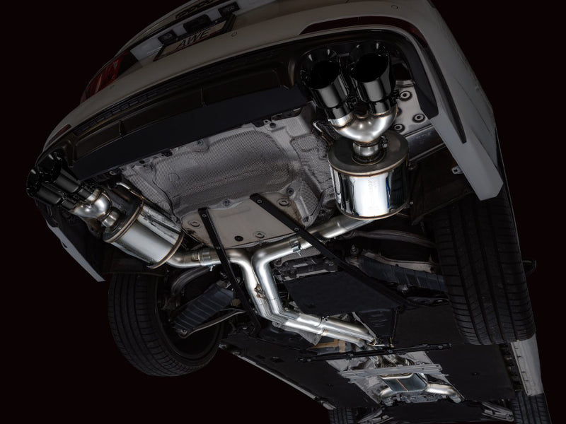 A true dual 3” T304L stainless steel configuration featuring a bespoke, straight-through center resonator specific for the 2.9TT, topped off with AWE’s proprietary drone-canceling solution, 180 Technology®, in the rear. The result is a menacing, aggressive soundtrack throughout the range with a drone-free cabin experience under cruising conditions. This exhaust resides at the intersection of exotic aggression and highway comfort for the S6/S7. Quad 4.5" double-walled, slash-cut tips in your choice of chrome silver or diamond black. AWE No CEL Guarantee, Perfect Fitment Guarantee, and Lifetime Warranty come standard.