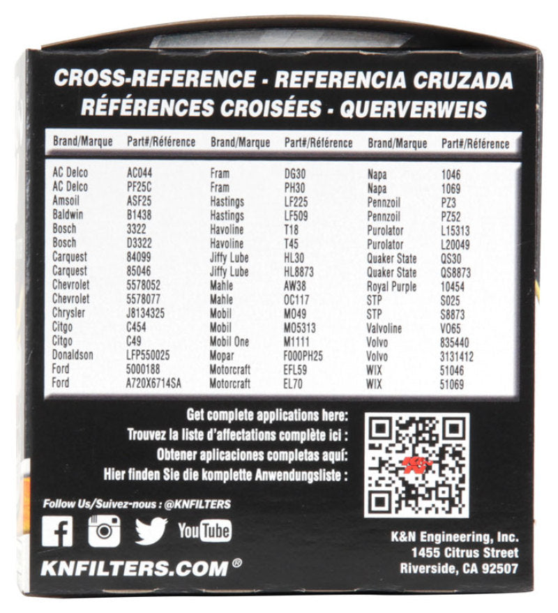 K&N Oil Filter OIL FILTER; AUTOMOTIVE