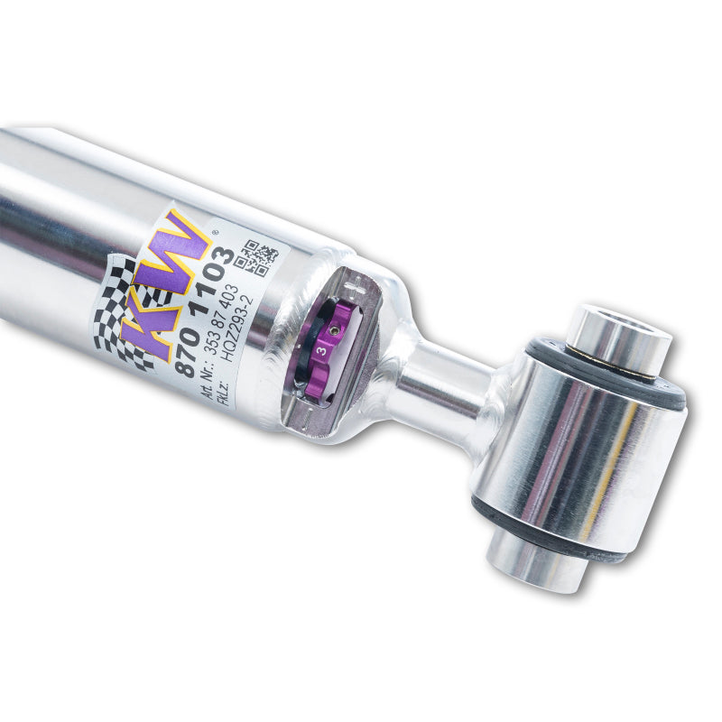 Cutting-edge motorsports technology -or more performance on the road. Like every suspension product developed by KW automotive and manufactured in Germany, the KW Variant 3 Coilover suspension kit also provides a significant improvment on the road. Thanks to the high-quality dampers, springs, and elastomer spring elements, pitching and rolling movements during load changes such as evasive maneuvers, cornering, acceleration, and braking are significantly reduced. The braking distances are also shortened. Thanks to improved support and feedback, drivers not only feel more confident but driving in everyday life is improved. With compression and rebound stage damping, that can be set separately and independently of each other, the damper setup can be customized to your personal driving preferences or vehicle changes such as weight, tire characteristics, or altered vehicle rigidity. True performance optimization is only possible with this unique, patented system. For example, this allows the compression damping force to be increased and get more grip from the tires, to improve cornering behavior and reduce squat without simultaneously altering the rebound stage damping which is optimally matched to the spring rate ? a scenario which results in reduced grip and the associated loss of performance. The KW Variant 3 INOX-LINE coilover kit is the ideal tool for performance-oriented drivers and experienced tuning enthusiasts who place a strong emphasis on the overall performance of their suspension. The Variant 3 features patented TVR-A and TVC-A technology -hat provides separately adjustable rebound and compression damping. The extensive Adjustment -ange of the independently configurable rebound and compression make it easy to directly influence the steering behavior, directional stability, grip and handling characteristics for confident and repeatable results at the limit of driving dynamics.