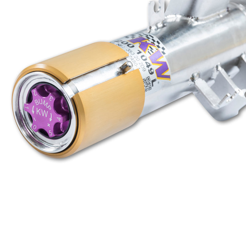 Cutting-edge motorsports technology -or more performance on the road. Like every suspension product developed by KW automotive and manufactured in Germany, the KW Variant 3 Coilover suspension kit also provides a significant improvment on the road. Thanks to the high-quality dampers, springs, and elastomer spring elements, pitching and rolling movements during load changes such as evasive maneuvers, cornering, acceleration, and braking are significantly reduced. The braking distances are also shortened. Thanks to improved support and feedback, drivers not only feel more confident but driving in everyday life is improved. With compression and rebound stage damping, that can be set separately and independently of each other, the damper setup can be customized to your personal driving preferences or vehicle changes such as weight, tire characteristics, or altered vehicle rigidity. True performance optimization is only possible with this unique, patented system. For example, this allows the compression damping force to be increased and get more grip from the tires, to improve cornering behavior and reduce squat without simultaneously altering the rebound stage damping which is optimally matched to the spring rate ? a scenario which results in reduced grip and the associated loss of performance. The KW Variant 3 INOX-LINE coilover kit is the ideal tool for performance-oriented drivers and experienced tuning enthusiasts who place a strong emphasis on the overall performance of their suspension. The Variant 3 features patented TVR-A and TVC-A technology -hat provides separately adjustable rebound and compression damping. The extensive Adjustment -ange of the independently configurable rebound and compression make it easy to directly influence the steering behavior, directional stability, grip and handling characteristics for confident and repeatable results at the limit of driving dynamics.