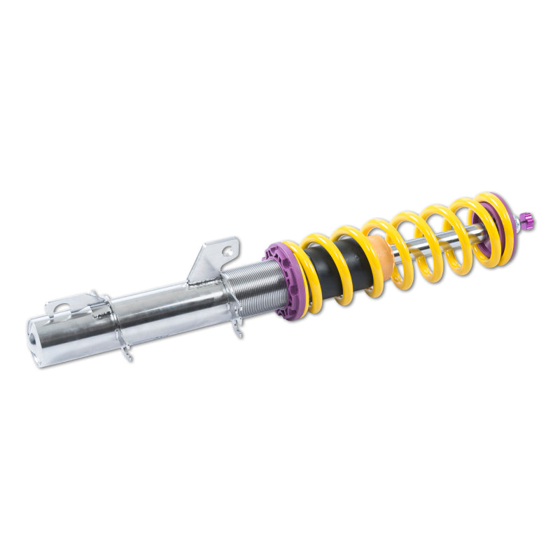 KW Street Comfort INOX-LINE coilovers are the perfect solution for drivers who want maximum ride comfort and a more discreet lowering range. In addition to stainless steel coilover struts, and corrosion-resistant components built for long term durability, KW Street Comfort coilovers utilize TVR-A (Twin Valve Rebound - Adjustable) technology -o allow Adjustment -f the rebound damping characteristics with 16 clicks so you can fine tune the ride comfort to your satisfaction. As with all KW coilovers our engineers develop vehicle specific damper settings that undergo comprehensive testing on the vehicles and in our KW 7-post Driving Dynamic Test Center. With a KW Street Comfort coilover kit the driving experience is tailored for absolute comfort. With the rebound adjustability you have direct influence on the handling and comfort of the car. With 16 precise clicks you can adjust the KW dampers (more firm or more comfortable) without affecting the compression damping fine-tuned by our engineers. The two-stage, patented TVR-A (Twin Valve Rebound - Adjustable) technology -nables a small volume of oil flow through an adjustable, conically shaped, low-speed bypass during low damper speeds, while at high damper speeds, the main rebound stage valve opens allowing a larger volume of oil to flow. This provides a big improvement in terms of ride comfort without influencing the high-speed range. There are 16 precise clicks available for individual settings, so you can choose between more comfort or more body control. For over 20 years, KW automotive has been the market leader and driving innovation as a manufacturer of individual suspension solutions for the road and in all types of motorsports. No matter where in the world, gearheads, automobile manufacturers and reputable tuners rely on our KW coilovers made in Germany. With an application list comprising more than 4,600 options KW guarantees an outstanding selection backed by our Limited Lifetime Warranty.