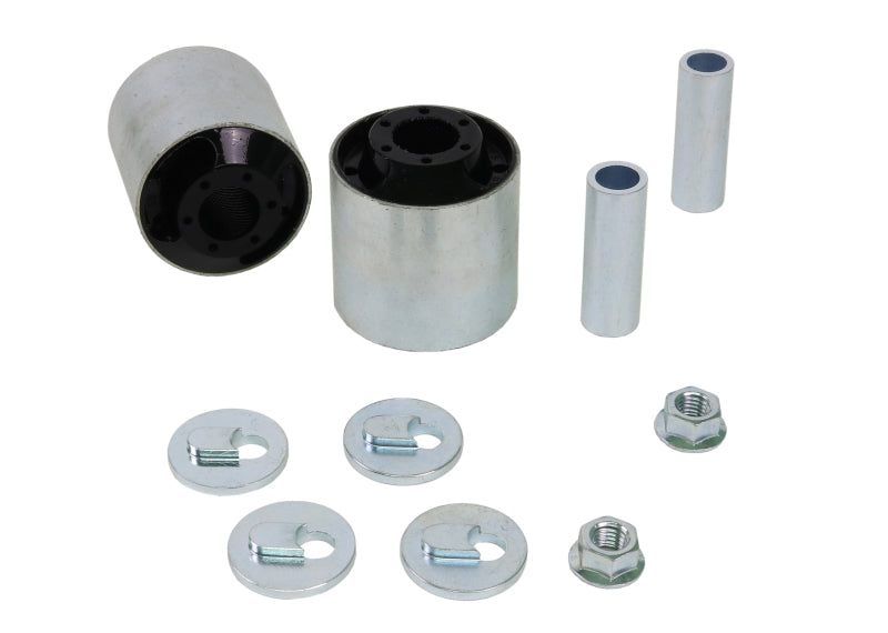Whiteline caster kits are designed to improve cornering grip and vehicle straight line stability through increased static caster and dynamic negative camber gain. In addition, synthetic elastomer bushings provide improved steering feedback and braking performance.